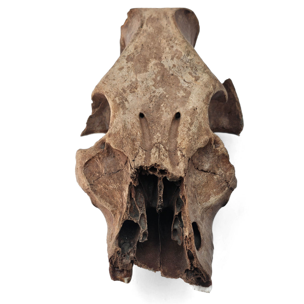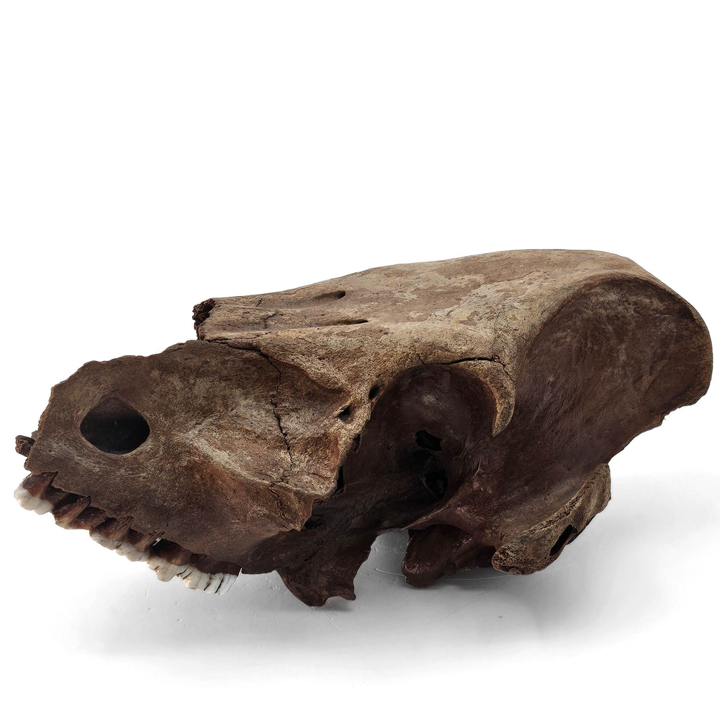 This piece carries a grounded, primal energy often associated with resilience, survival, and adaptability. Boar symbolism across cultures is tied to strength, determination, and the ability to push through obstacles, making this skull a striking representation of endurance shaped over deep time.
