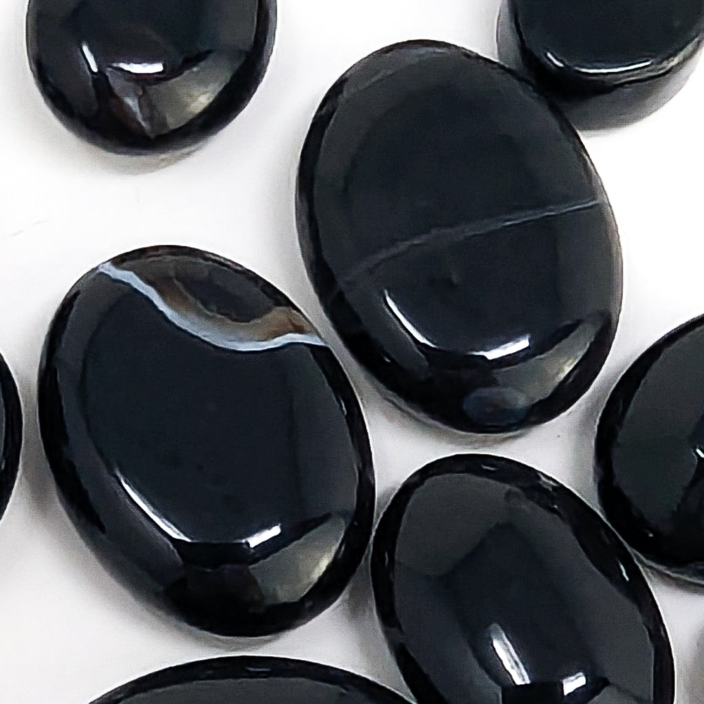 Black onyx is a variety of chalcedony, a cryptocrystalline form of quartz (SiO₂), formed through the slow deposition of silica-rich fluids in cavities within volcanic rock. Brazilian onyx is especially prized for its consistent black coloration and fine-grained structure, making it ideal for carving and polishing. These oval tumbles bring out the natural density and elegance of the stone, offering both beauty and durability in a compact form.