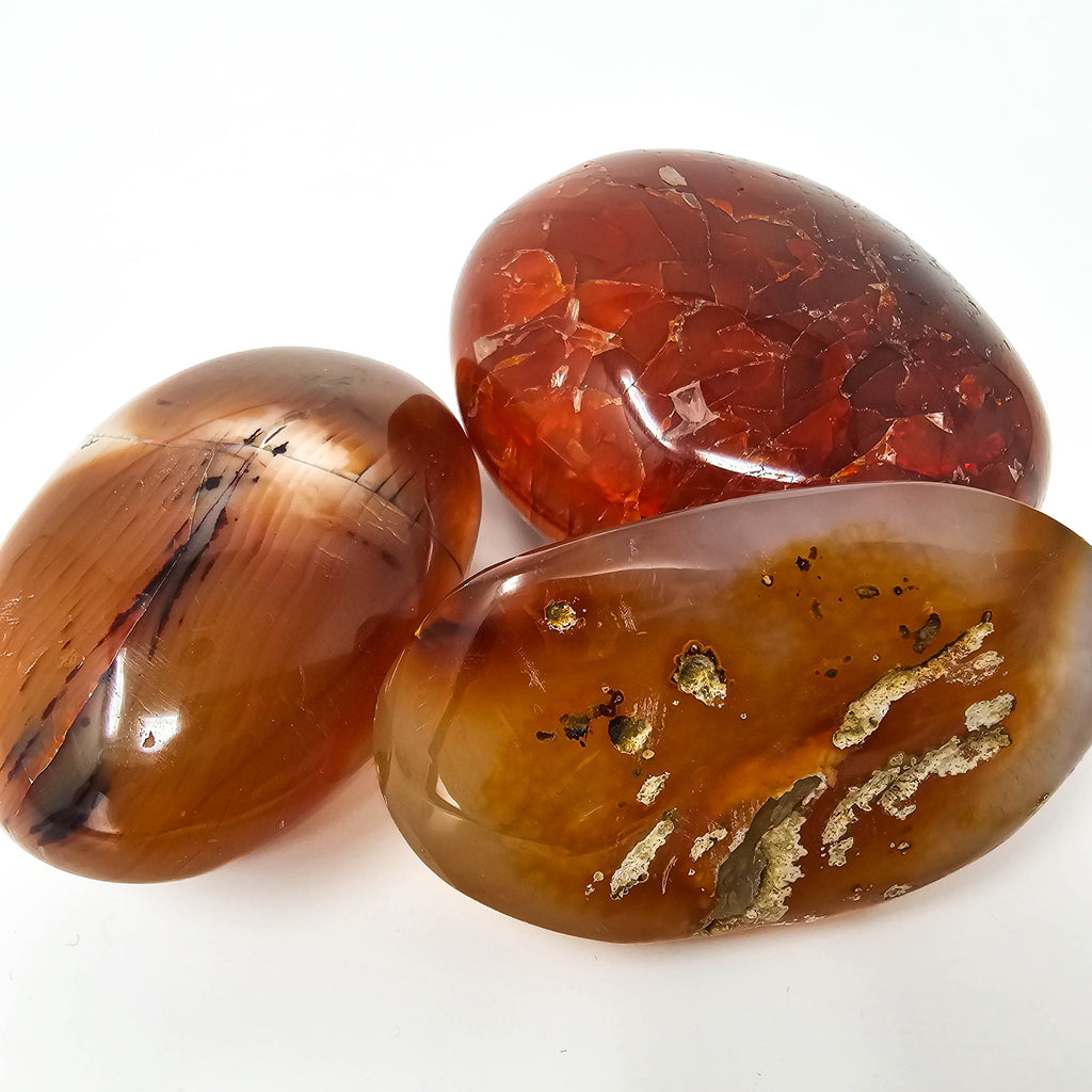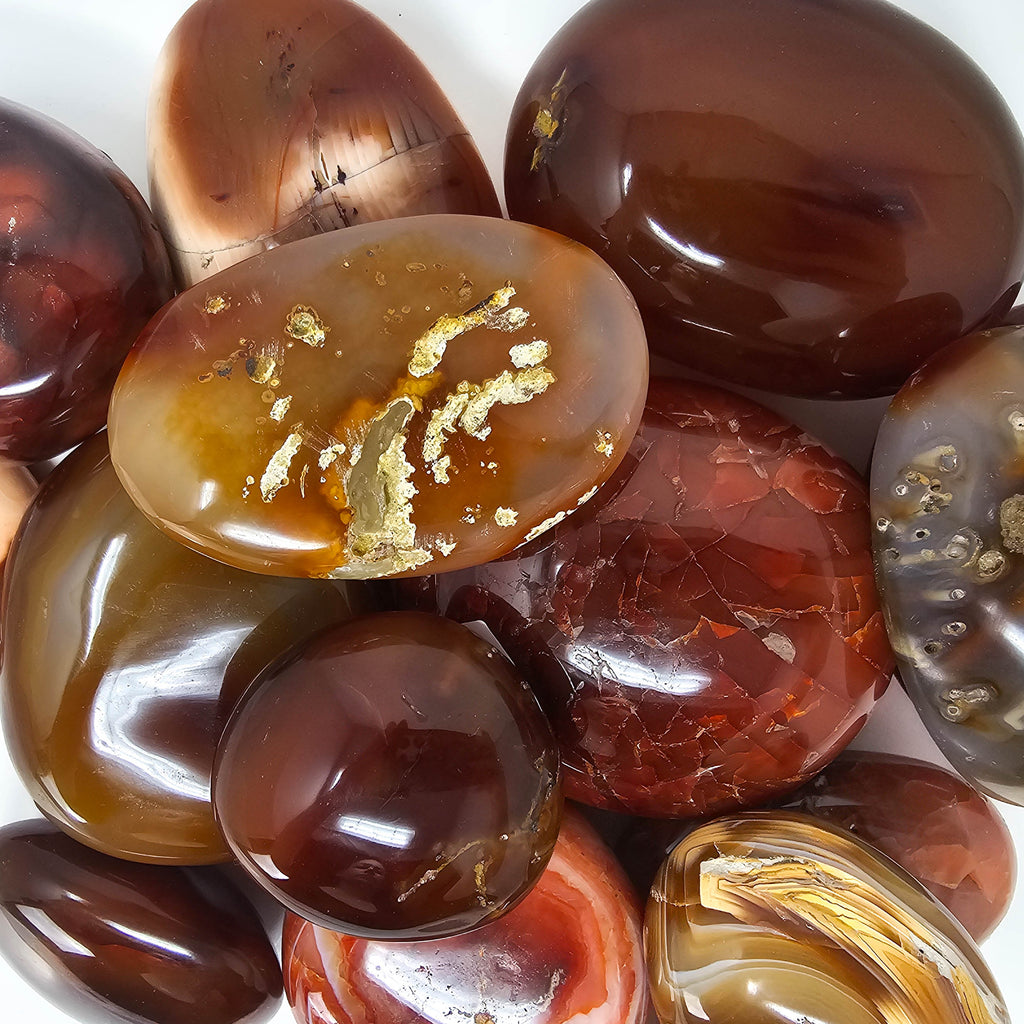 Description: Carnelian, which is also known as the singers stone, and the sunset stone Carnelian is a member of the chalcedony family. It is a silica mineral that takes its colour from iron oxide. Carnelian has a hexagonal crystal system and has a vitreous luster. It comes in colours that are red, reddish brown, and even white. Carnelian is a stone of creativity and passion. Carnelian gives you courage, motivation, regulates blood pressure and helps circulatory issues. Bring Carnelian into the workplace to encourage drive, ambition, and determination. Carnelian alleviates jealousy in relationships and dispels anger and rage. It can also help stir up fertility and even for those not wanting to go down that path, it can be an amazing aid in giving your libido a boost and helping you to fully step into the fire of your own sexual identity and power.