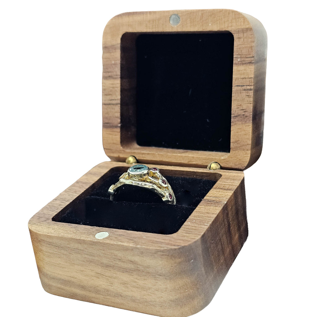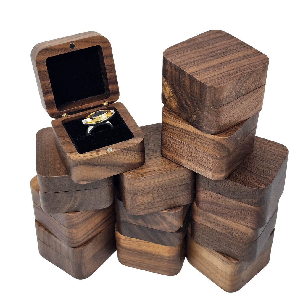 Description: This square wood jewelry box ring box has a simple, clean design made for storing or presenting a ring in a neat and attractive way. Its compact shape makes it easy to use for proposals, gifts, display cases, or retail presentation. The natural wood finish gives it a warm, classic look that works well with many jewelry styles, from modern pieces to more rustic or handmade designs.
