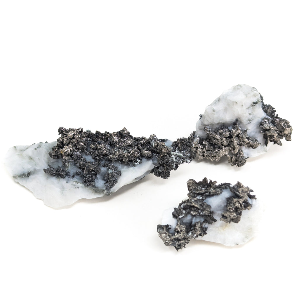 Description: This striking Dendritic Silver Ore in Calcite specimen from Morocco showcases the natural artistry of metallic mineral growth. Delicate, tree-like silver inclusions—known as dendrites—branch organically through a backdrop of translucent to milky white calcite, creating a dramatic contrast between metallic luster and carbonate calm. These dendritic patterns are formed when native silver precipitates in branching forms along microfractures or bedding planes, often during hydrothermal processes within silver-rich deposits. The result is a naturally occurring mineral “painting,” frozen in stone.