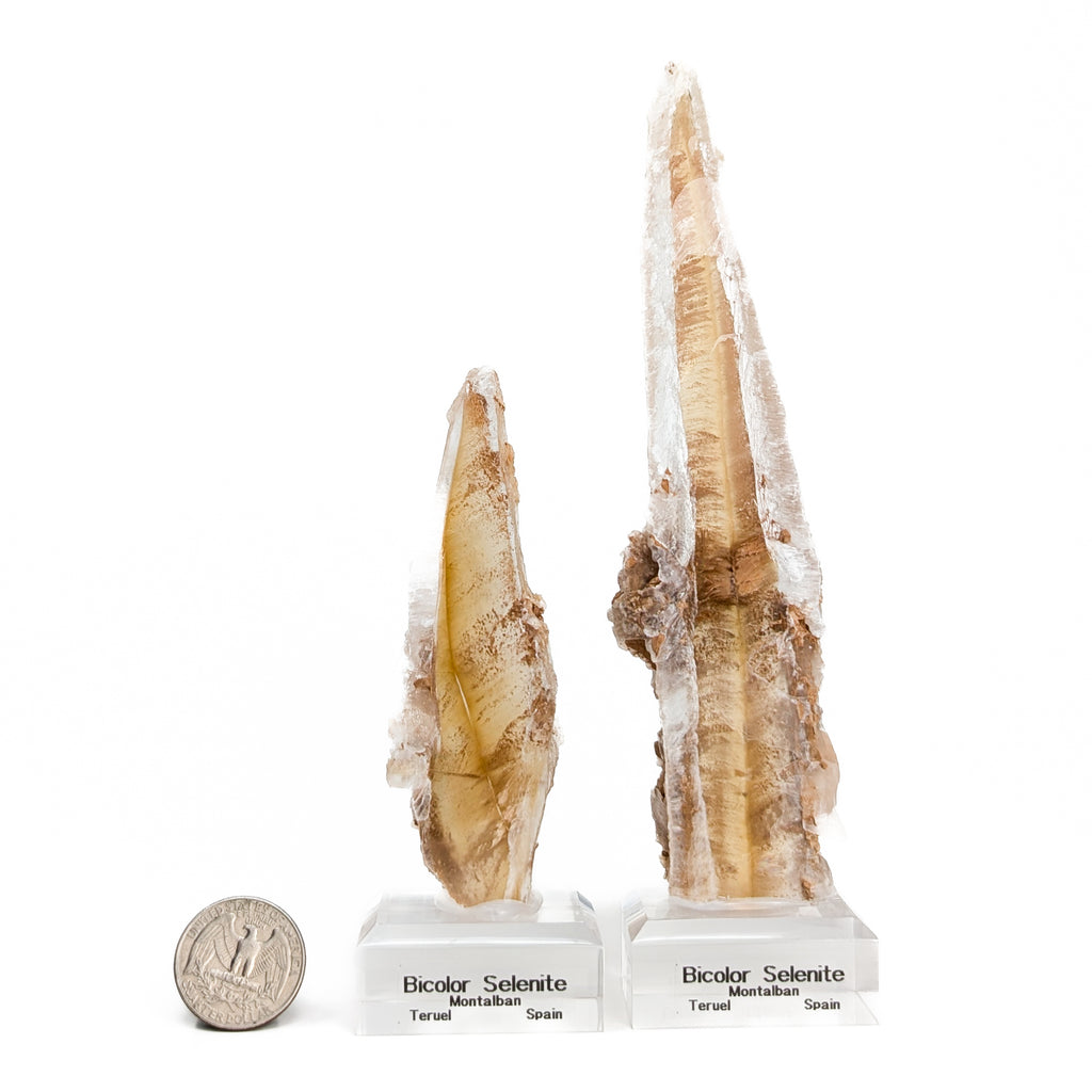 Selenite, a crystalline form of the mineral gypsum, is renowned for its delicate structure and remarkable optical properties. The Montalbán region has produced some of the world's most prized selenite specimens due to its unique geological conditions, where slow evaporation in ancient basins allowed crystals to grow large and clear. Bi-colour pieces like this one are especially sought after by collectors, not only for their rarity but for the layered elegance they add to any mineral collection or interior display.