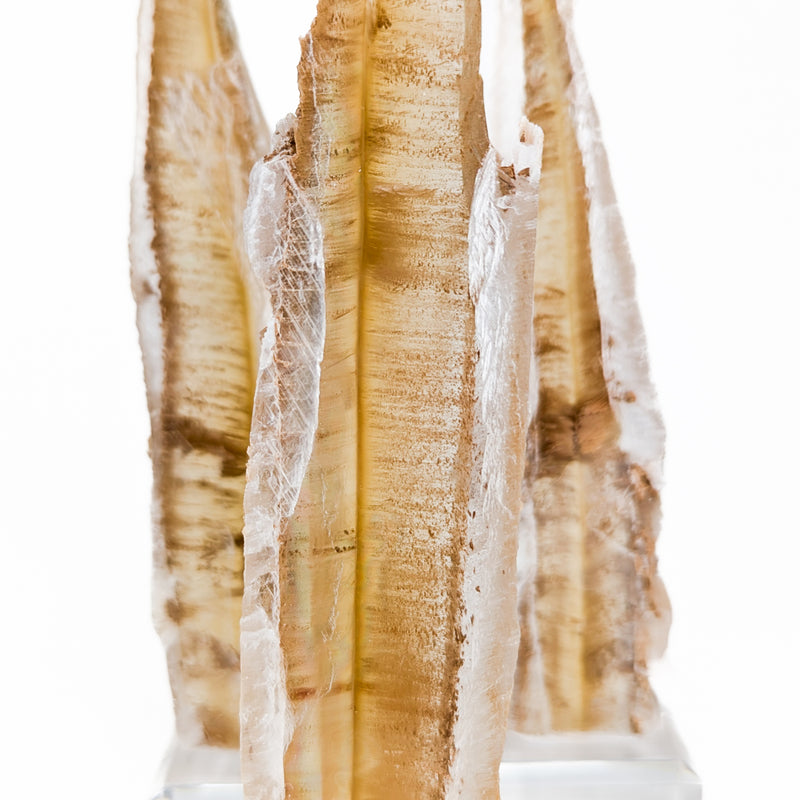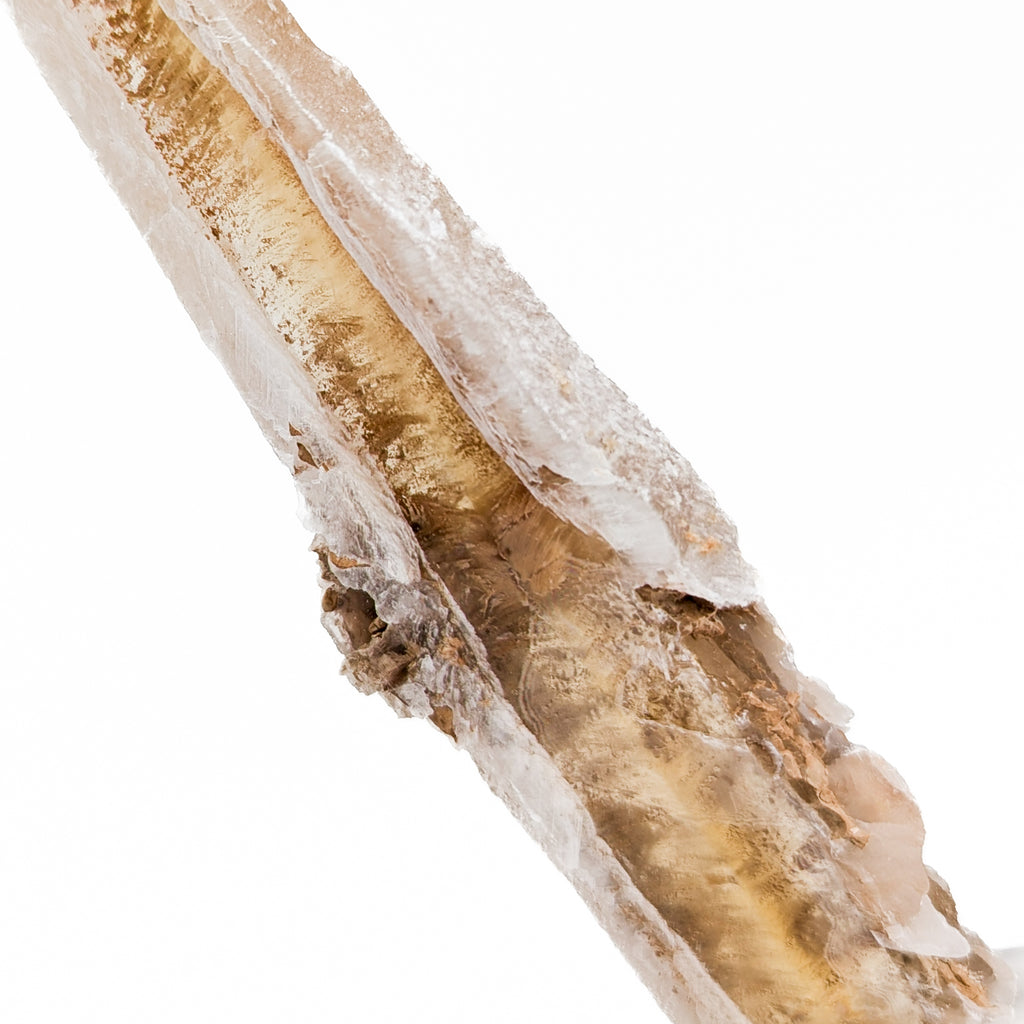 Description: Sourced from the historic mining region of Montalbán, Spain, this bi-colour selenite showcases a stunning natural contrast that sets it apart from the traditional single-tone varieties. Known for its exceptional clarity and luster, Spanish selenite often forms in massive crystal beds, but rare finds like these feature distinct color zoning—often blending creamy whites with warm honey, soft beige, or even delicate golden tones. This beautiful interplay of colors reflects subtle changes in mineral content during the crystal’s growth, offering a striking visual story written in stone over countless millennia.