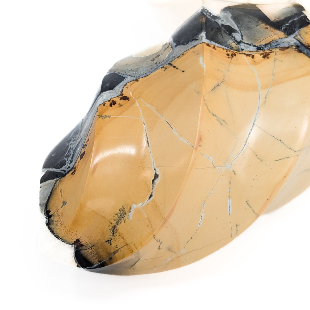 Unlike more uniform jaspers, Maligano is celebrated for its chaotic beauty and visual complexity. The flame shape enhances these patterns, making it a stunning display piece that highlights the dramatic contrasts and depth of the stone. Each piece is completely unique, offering both aesthetic appeal and a tangible connection to Indonesia’s volcanic landscapes. It’s a collector’s favorite for its rarity, natural artistry, and the emotional depth it seems to evoke.