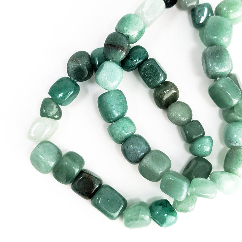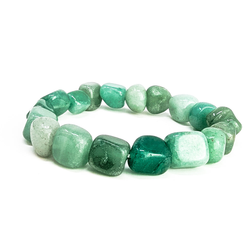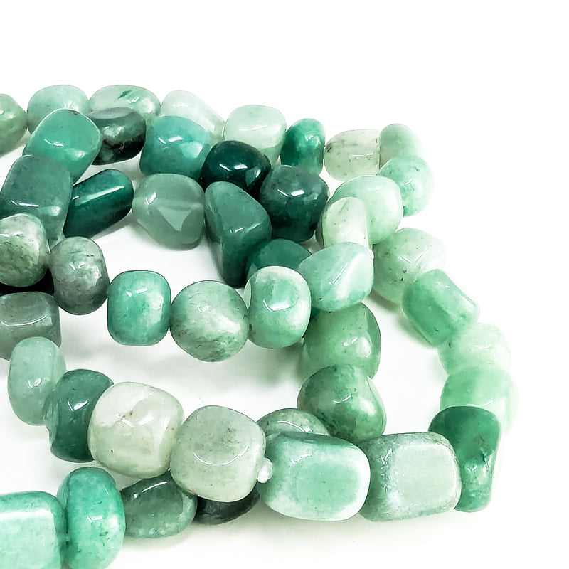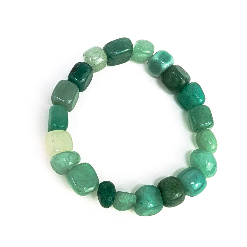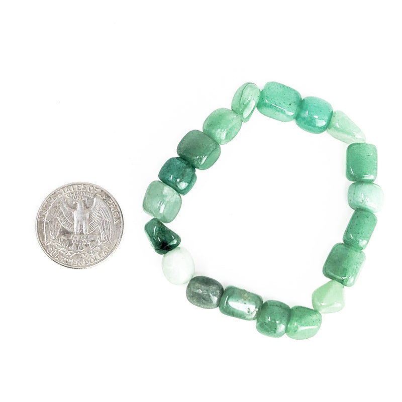 Description: This tumbled bead bracelet is made from genuine green aventurine sourced from Brazil, a stone long admired for its shimmering, leafy-green color and subtle sparkle known as aventurescence. Formed primarily of quartz with tiny inclusions of fuchsite or mica, green aventurine from Brazil is particularly known for its rich hue and uniform polish. The beads are rounded and smoothed to a soft finish, giving the bracelet a natural elegance and soothing tactile appeal.