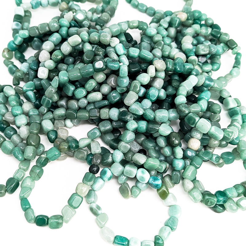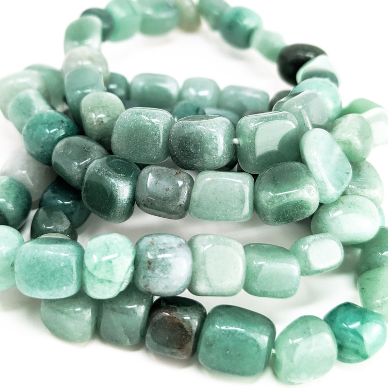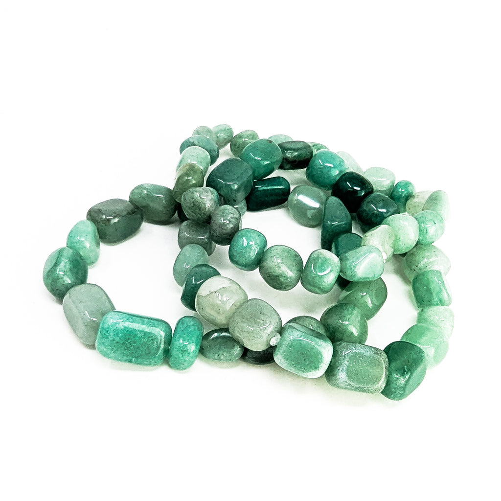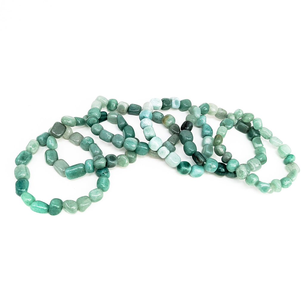 Description: This tumbled bead bracelet is made from genuine green aventurine sourced from Brazil, a stone long admired for its shimmering, leafy-green color and subtle sparkle known as aventurescence. Formed primarily of quartz with tiny inclusions of fuchsite or mica, green aventurine from Brazil is particularly known for its rich hue and uniform polish. The beads are rounded and smoothed to a soft finish, giving the bracelet a natural elegance and soothing tactile appeal.