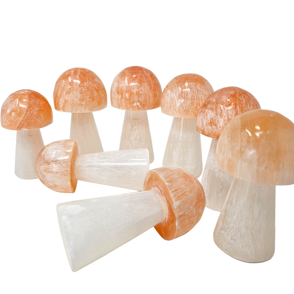 Selenite has long been associated with clarity, calmness, and energetic cleansing. Many people use it as a stone believed to clear stagnant energy from spaces or other crystals. The mushroom shape adds symbolic meaning, often representing growth, grounding, and connection to