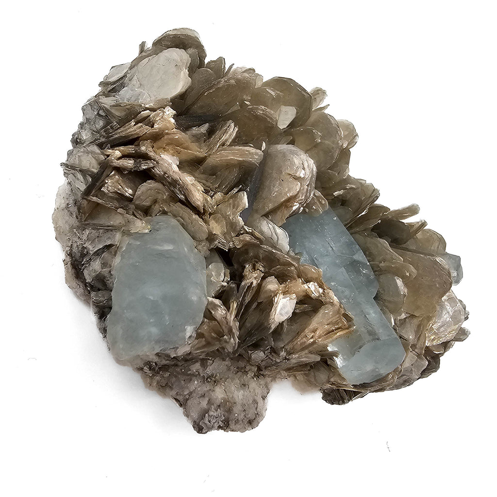 Aquamarine is a variety of beryl that forms in granitic pegmatites, where slow cooling allows large, well-structured crystals to develop. The Shigar Valley is known for producing some of the world’s best aquamarine specimens, often associated with mica and quartz. The blue coloration comes from trace iron within the crystal structure, and the clean faces and termination seen here indicate stable growth conditions with minimal disturbance during formation.