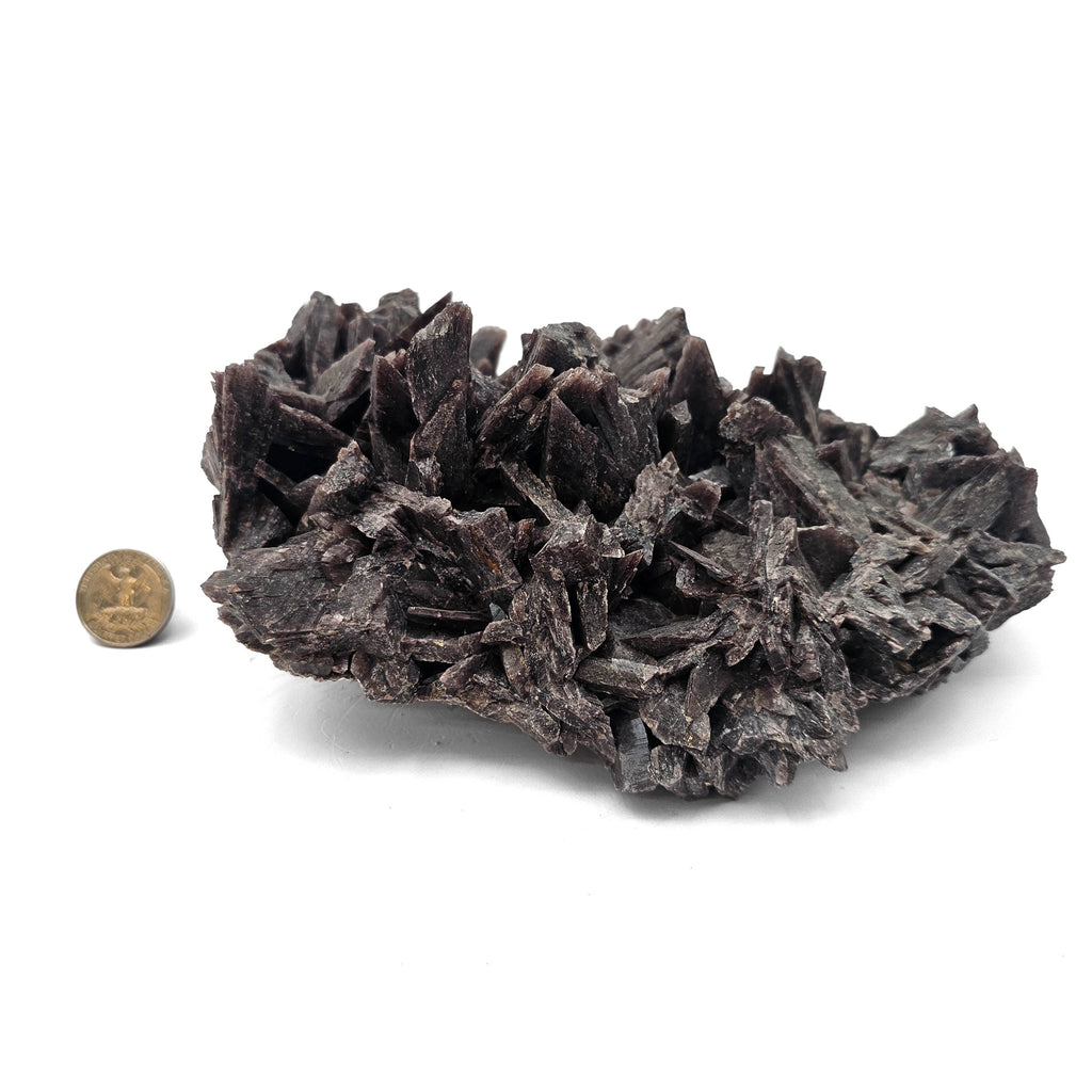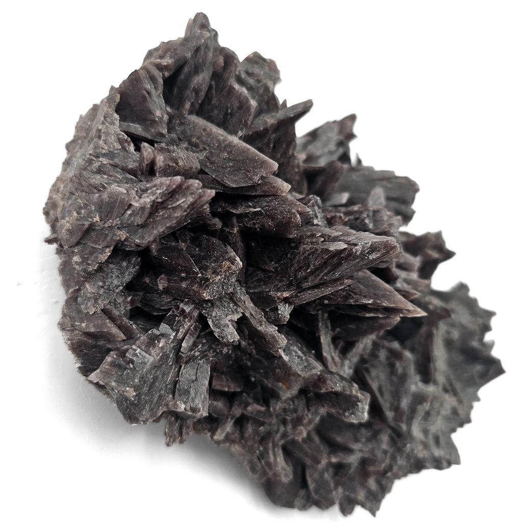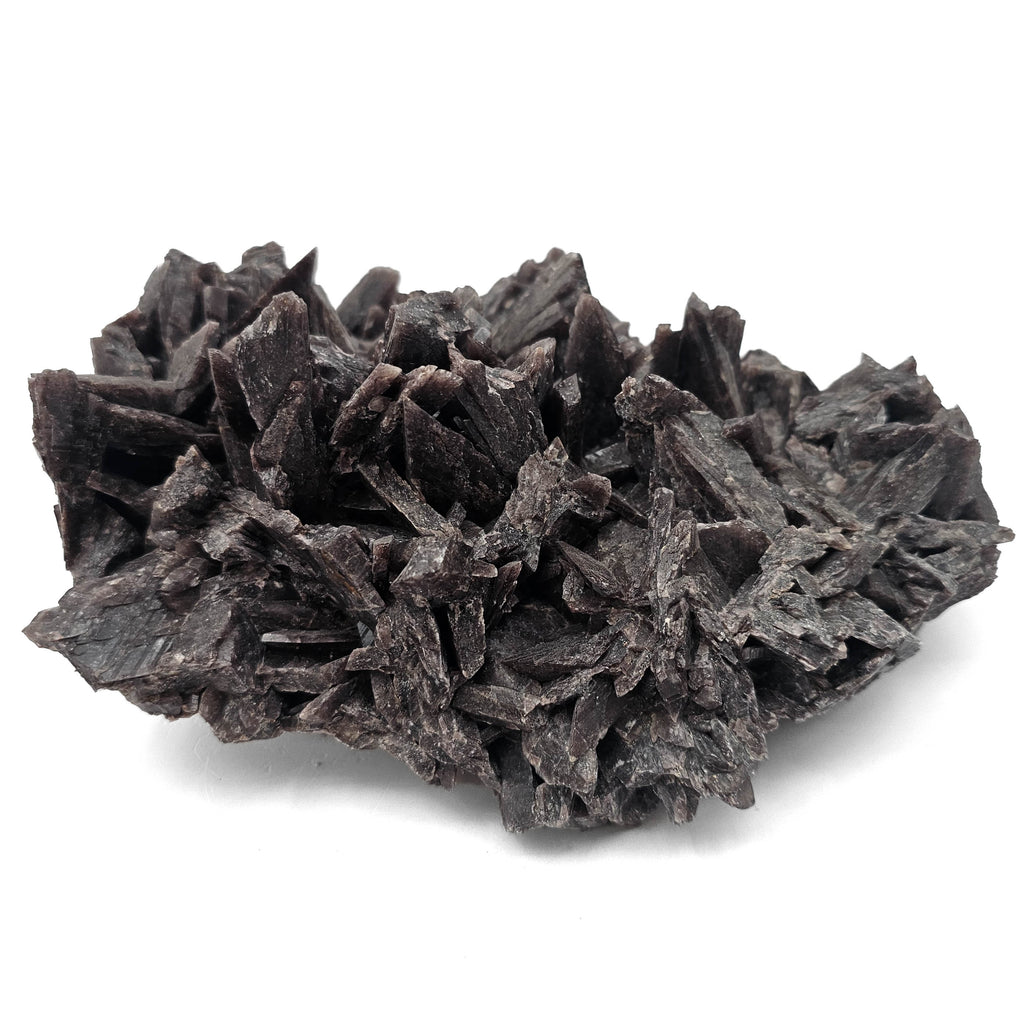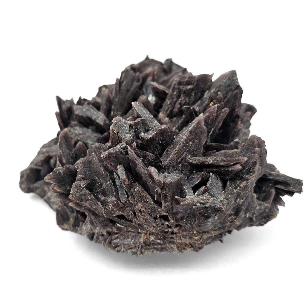 Axinite is named from the Greek word for “axe,” which refers to its distinctive wedge-like crystal form. That shape is the defining feature of the mineral, and this specimen shows it well in a compact, natural cluster. Axinite forms in metamorphic and hydrothermal environments, often where boron-rich fluids alter calcium-bearing rocks. Peruvian material is appreciated for its dark color, sharp crystal development, and dramatic clustered habits. This piece stands out for the way the crystals stack and intersect, producing a specimen that feels architectural rather than soft or rounded.