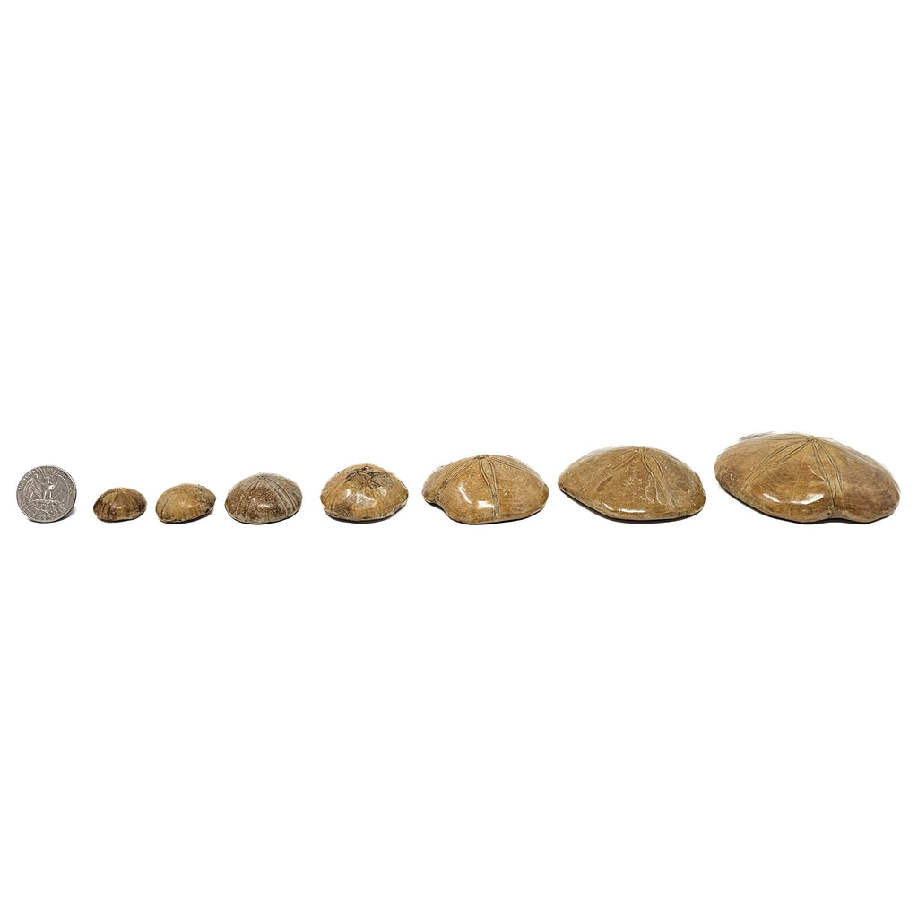 描述: 來自馬達加斯加的 Mepygurus marmonti。它的頂部經過拋光處理,以凸顯表面細節,其歷史可以追溯到侏羅紀晚期,大約 1.5 億年前。沙錢,又稱化石海膽。